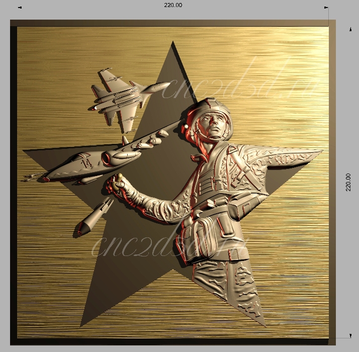 Круглые панно-медальоны, отфрезерованные и 3d модель для станка с ЧПУ / Панно "Звезда" с бойцом и самолетом, 3d модель для станков с ЧПУ
